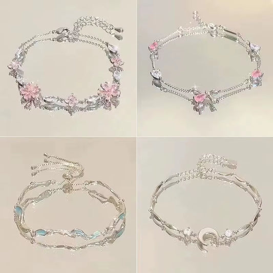 New Women Bracelet Shiny Pink Zircon Butterfly Cherry Blossom Hand Chain for Girls Friendship Gift Y2K Accessories